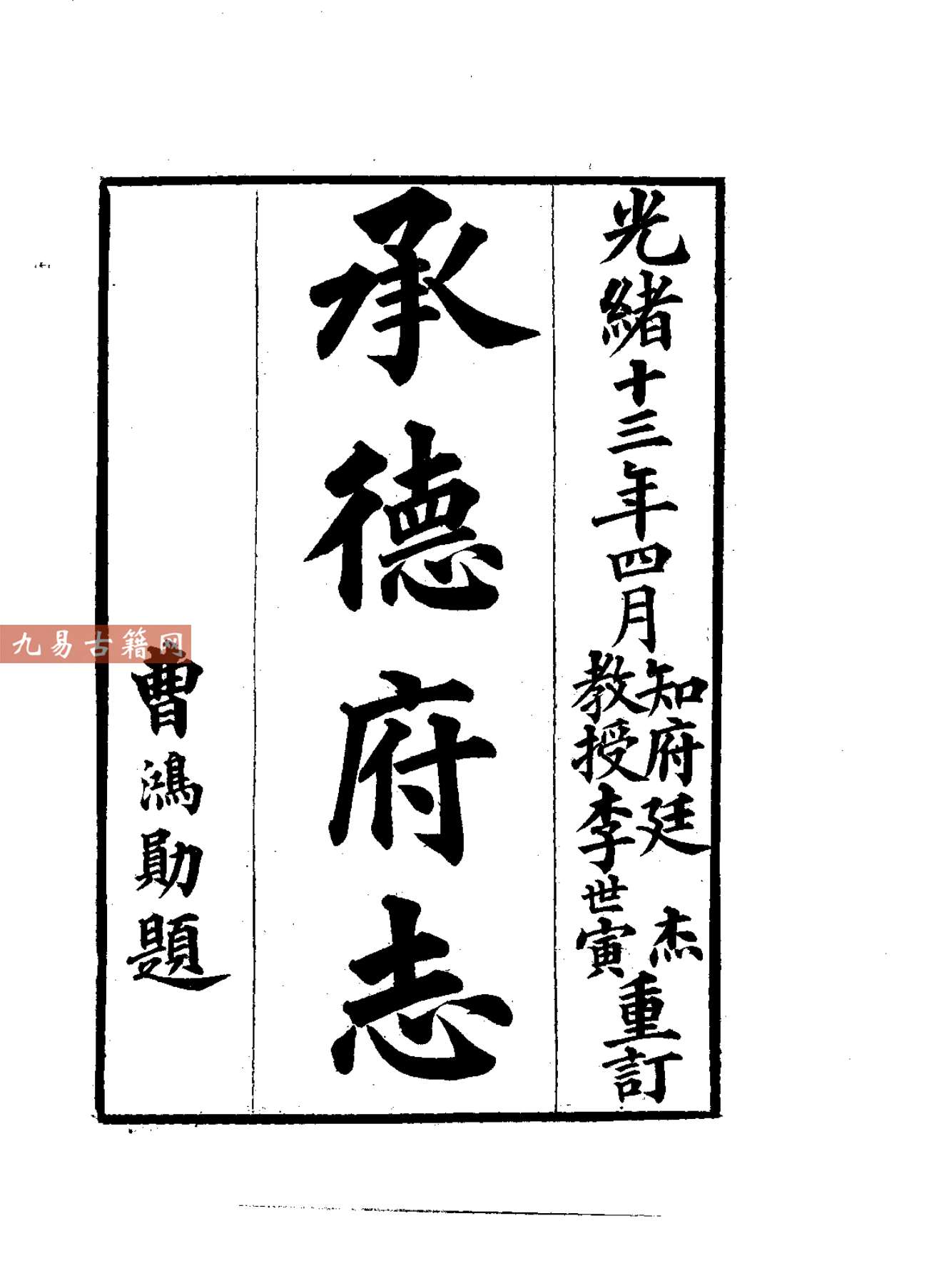 《承德府志》是清代记述直隶承德府(今河北承德)地区的地方志。该书系统纂修于道光年间,最终成书于光绪十三年。主要编纂者为承德知府海忠。海忠,满洲镶黄旗人,历任地方知府、道员,任内注重文教,主持修志以存地方文献。