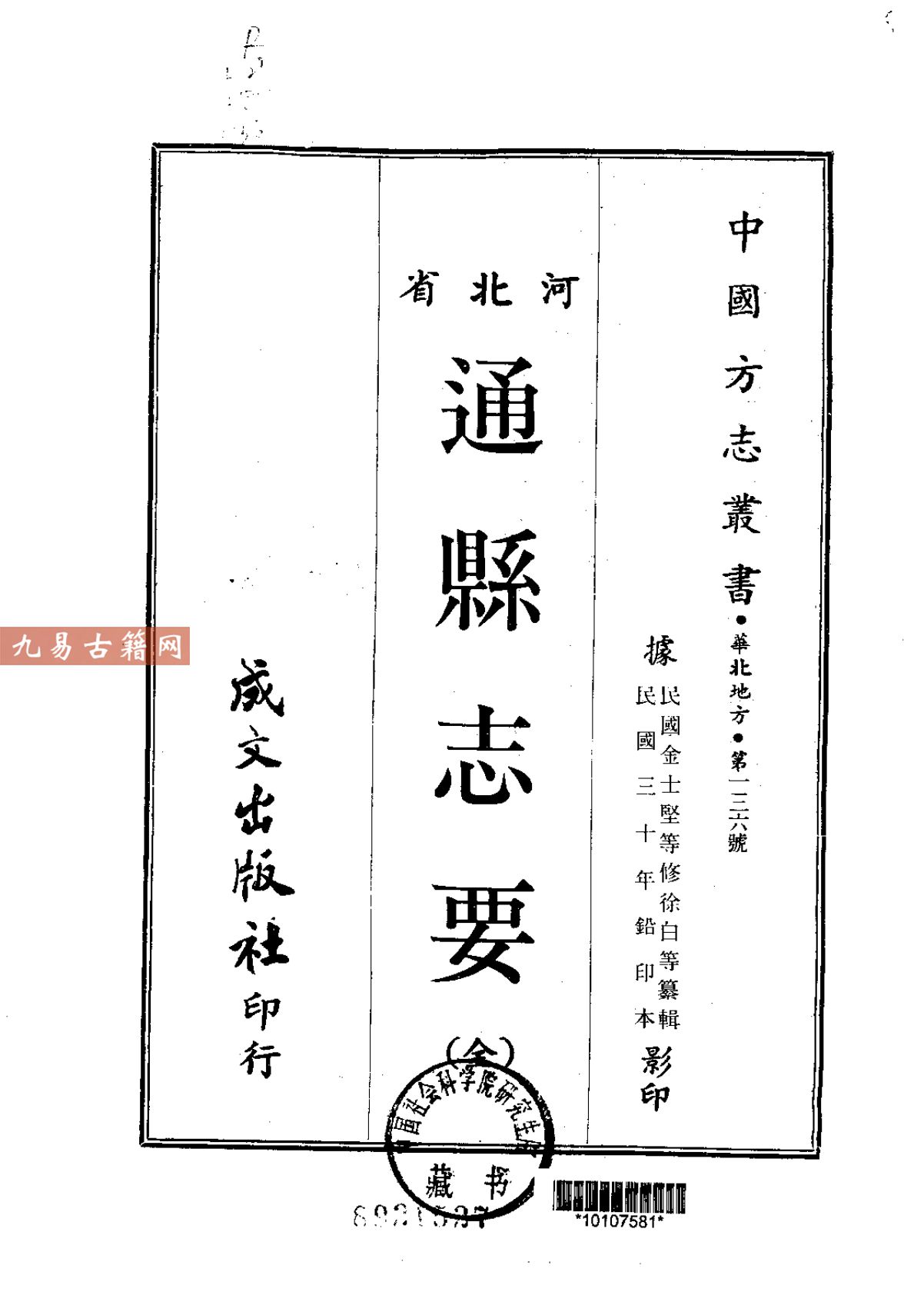 《通县志要》成书于民国三十年(1941年),由时任通县县长金士坚主修、徐白编纂。该书是民国时期对河北通县(今北京通州区)的一部简明方志,旨在赓续前志、补录新事。