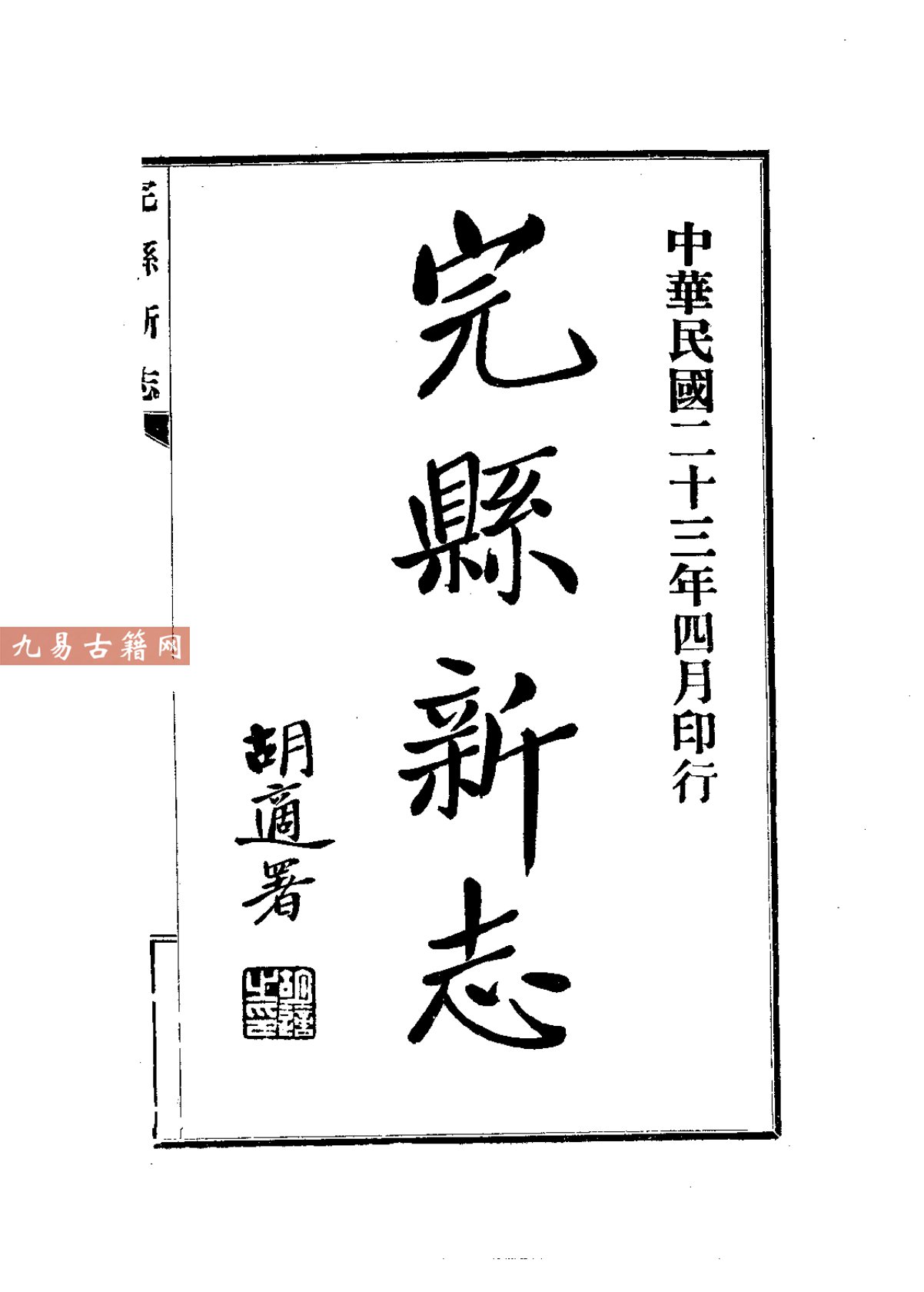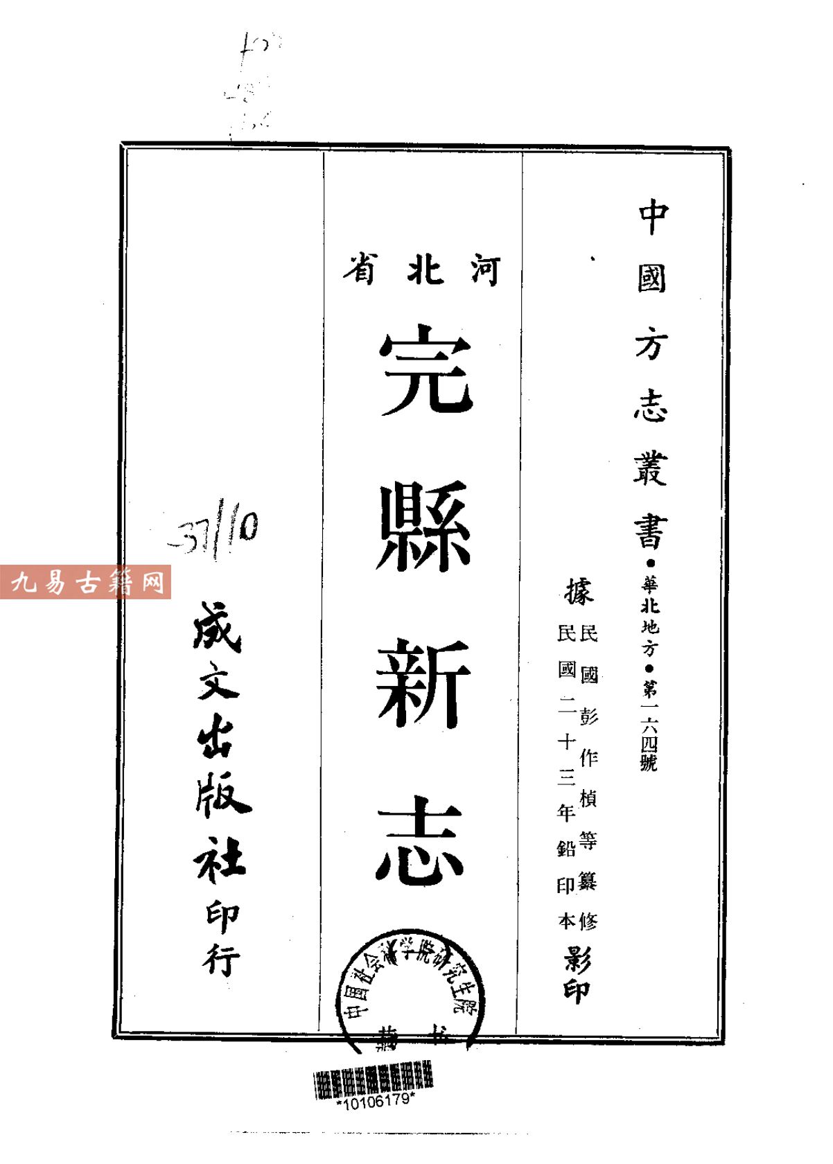 《完县新志》是一部系统记述河北省完县(今顺平县)历史与地理状况的地方志书。成书于民国二十三年(1934年),由时任完县县长彭作桢主持编纂。彭作桢为四川开县人,民国时期官员与学者,其编纂工作秉持了现代方志理念,注重实地调查与科学分类。