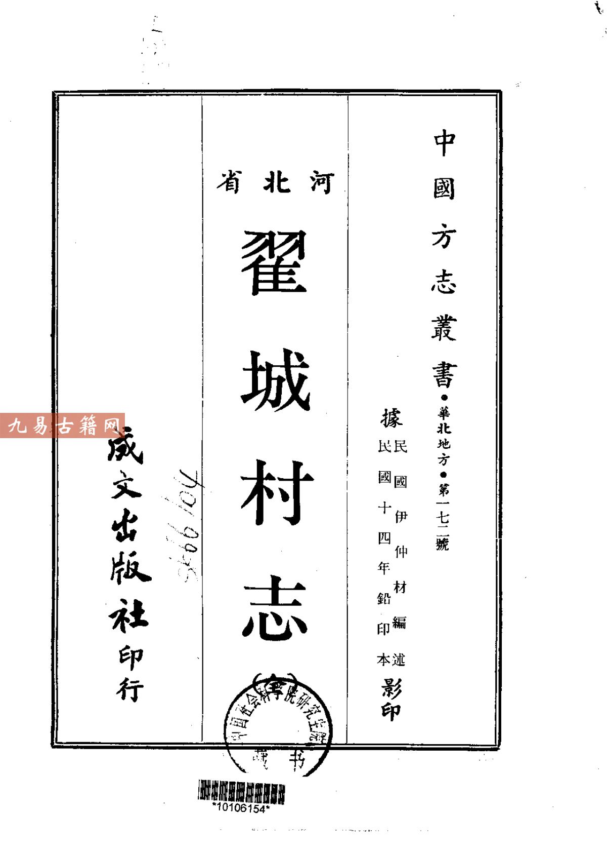 《翟城村志》是一部详细记述河北省定县(今定州市)翟城村历史与地方社会状况的专志。该书系统记载了该村自明清至民国时期的地理环境、建制沿革、经济生产、文化教育、民俗风情及重大事件,其核心内容与历史价值在于对20世纪初翟城“乡村自治”实验的完整记录,包括米氏家族主导的地方自治章程、平民教育、农业改良和公共建设等近代化实践。