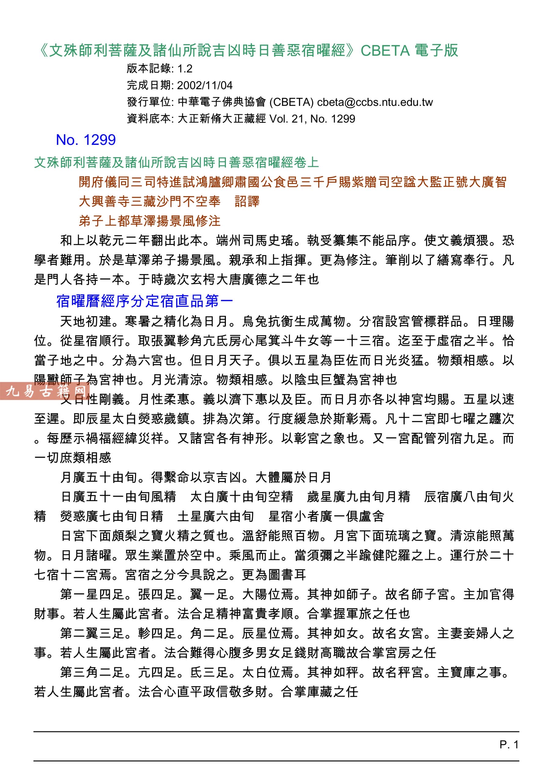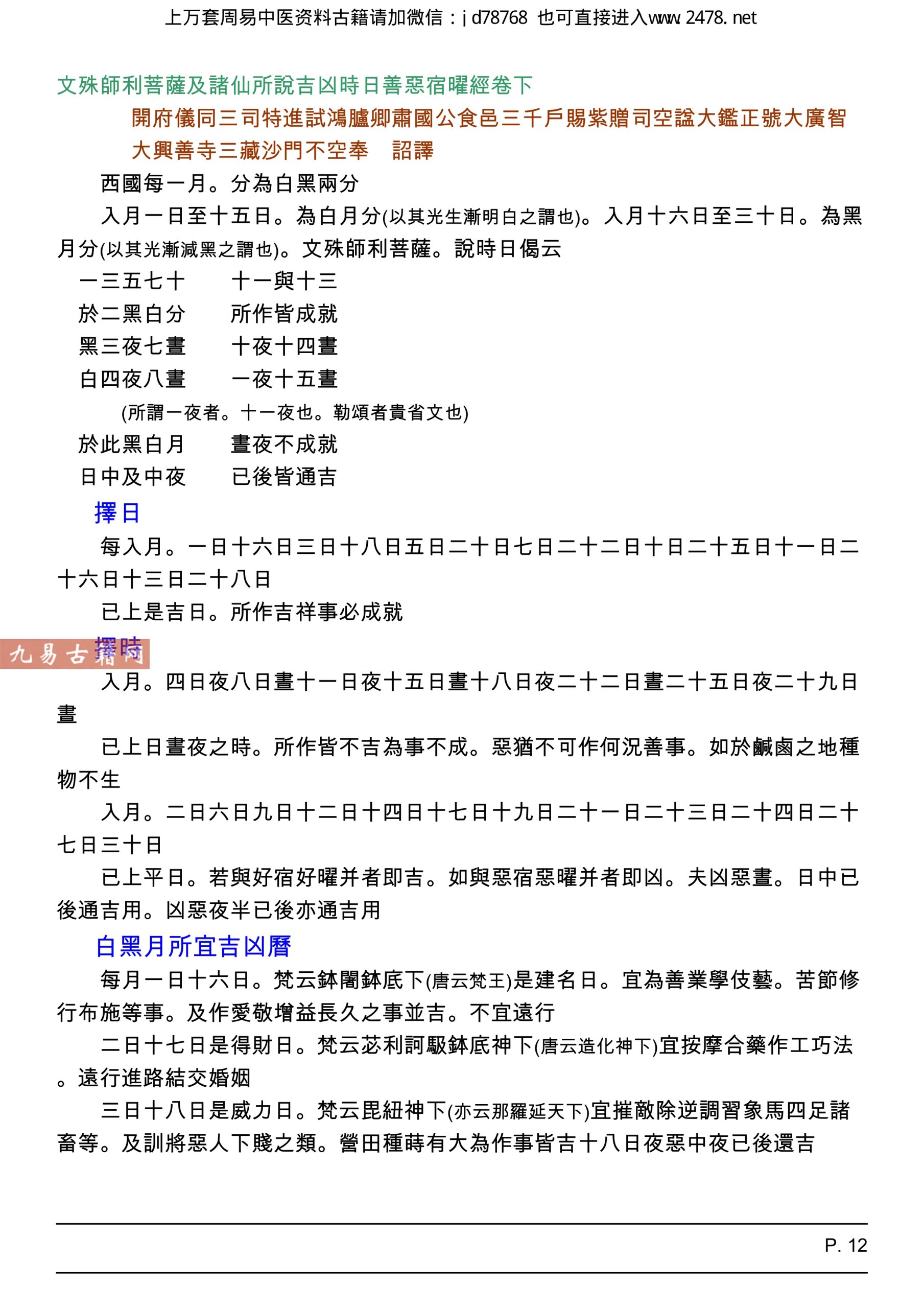 文殊師利菩薩及諸仙所說吉凶時日善惡宿曜經.pdf,古籍整理电子版。
