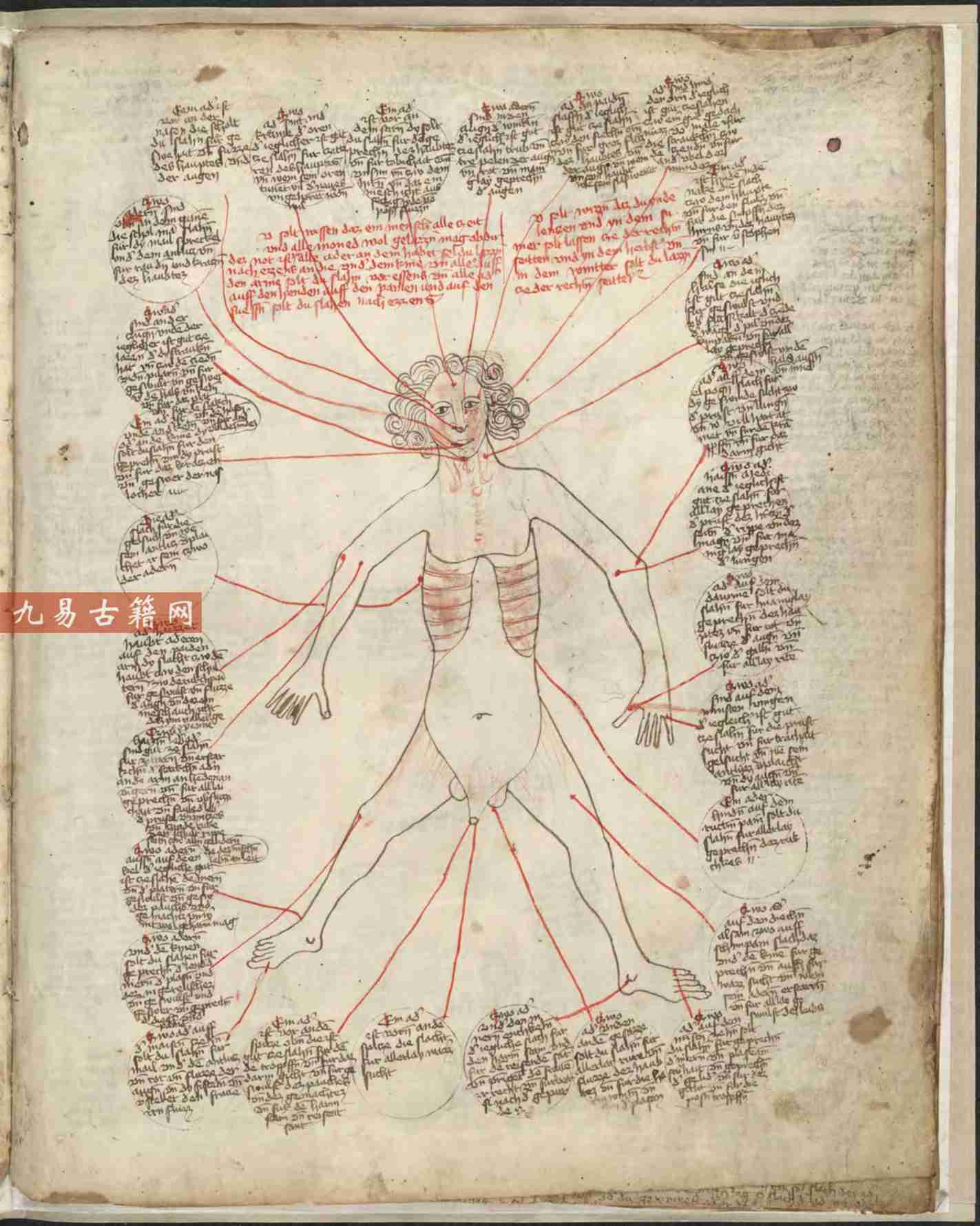 此手稿成书于15世纪(约1400年至1499年间),是欧洲中世纪晚期向文艺复兴过渡时期的代表性知识汇编。其核心特征在于将道德寓言与实用医学绘图独特地结合于一体。