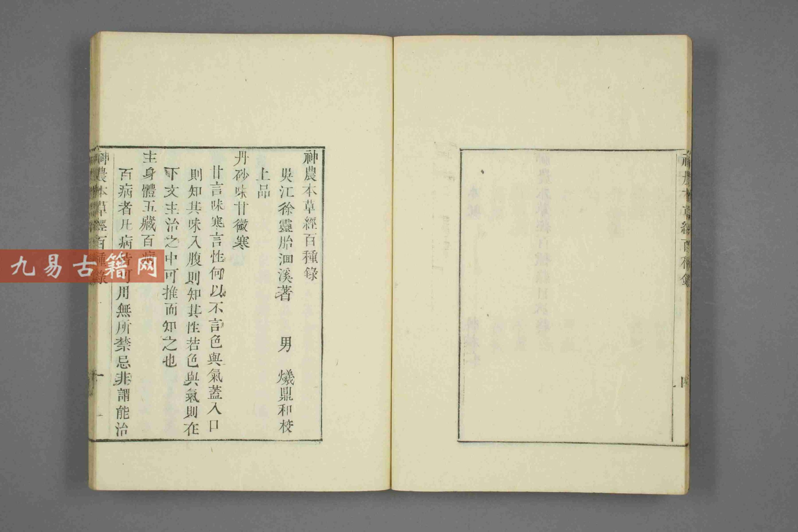 《本草经百种录》成书于清乾隆元年(1736年),为清代名医徐大椿(字灵胎)所著。该书旨在阐发《神农本草经》药物精义,并非全本辑录,而是精选其中百种药物进行深入辨析,体现了“辨明药性、阐发义理”的学术特征。