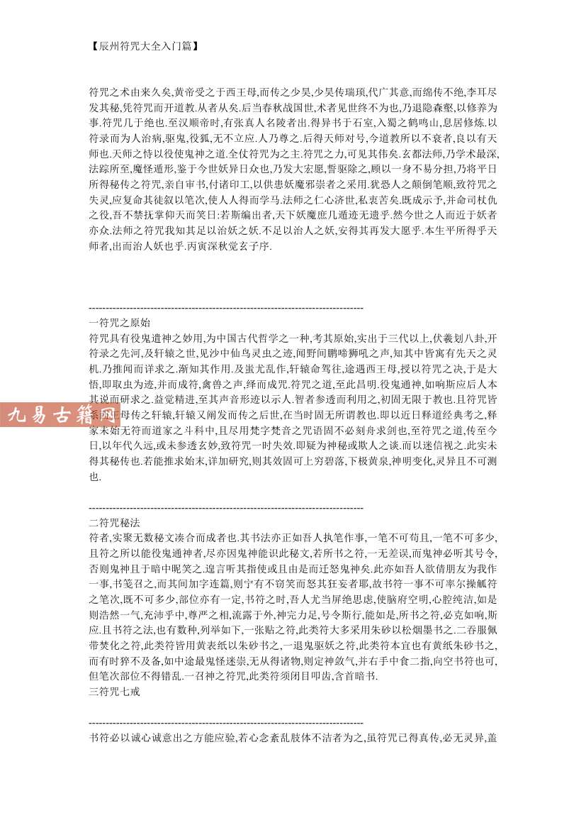【辰州符咒大全入门篇】.pdf 13页。古籍整理电子版。