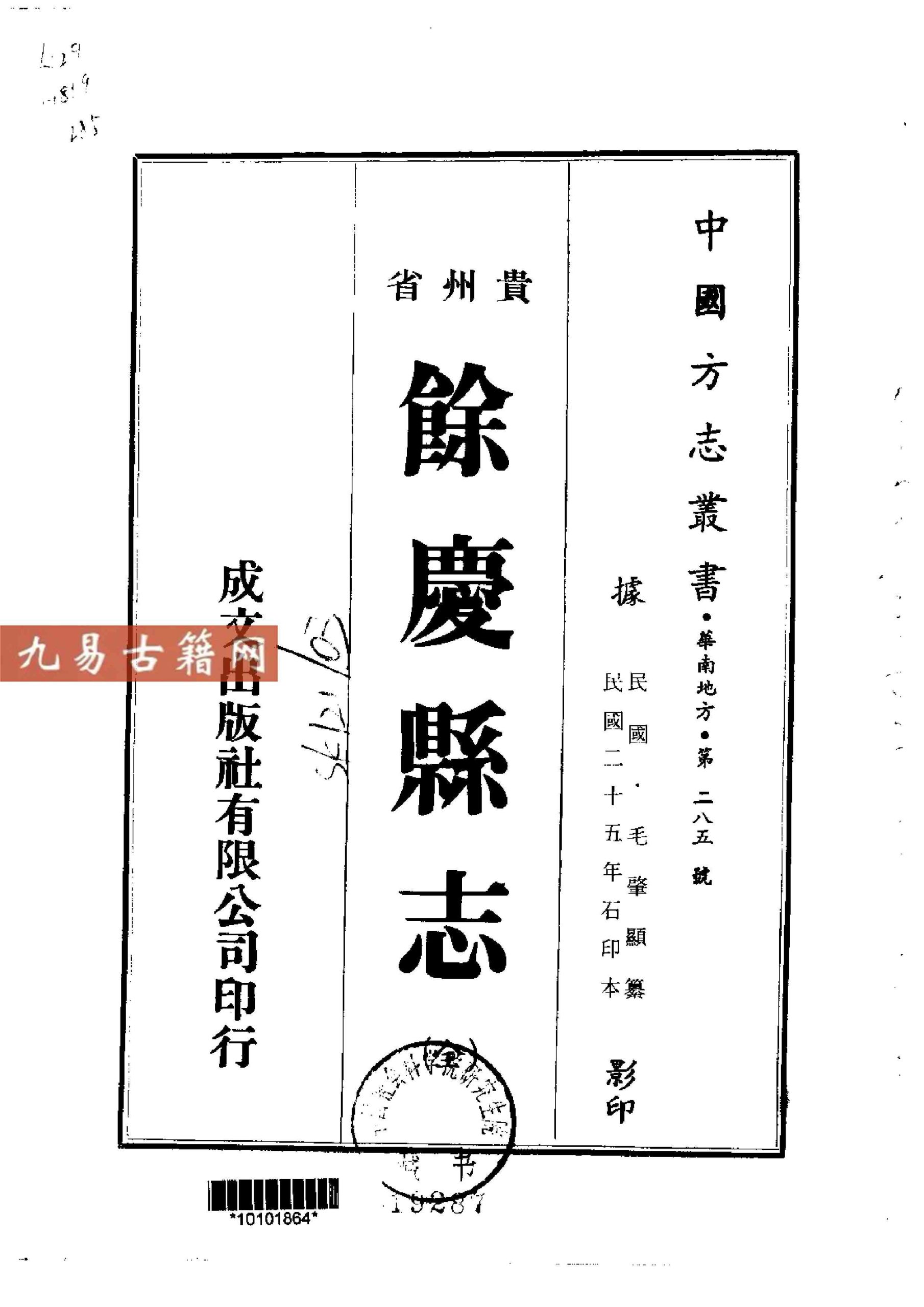 贵州省余庆县志(全).394页.民国时期版本pdf.古籍整理电子版。 《余庆县志》是记录贵州余庆县历史与文化的权威典籍,由清代知县蒋深主持编纂,成书于康熙五十七年(1718年)。全书内容宏富,涵盖地理沿革、建置变迁、政事人物、艺文古迹等,是研究余庆历史的重要文献。书中既有对地方风物的严谨记述,也融入了编纂者“修志以存史”的使命感,字里行间仿佛能听到古人“职方之典,缺而不修”的忧思。作为清代地方志的典型代表,它不仅是地理志,更是一部承载着地方文脉的史诗。