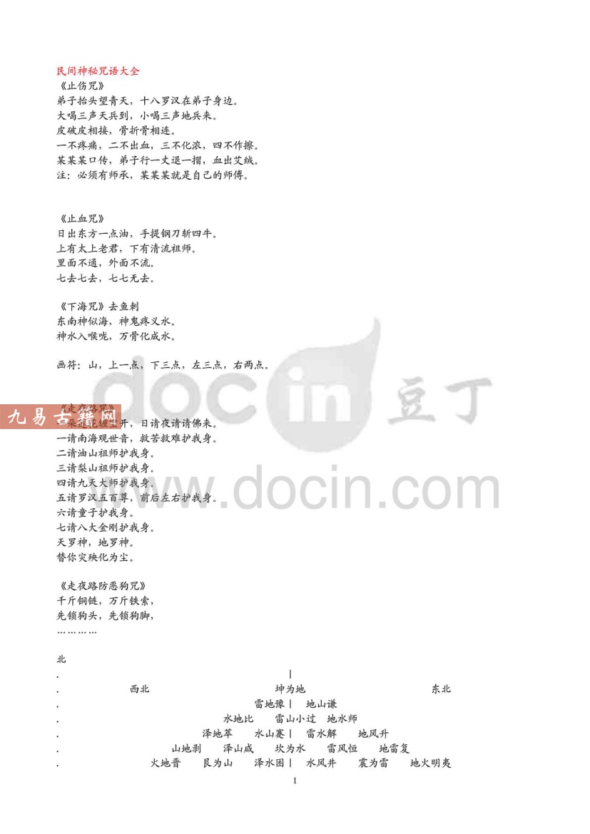 民间神秘咒语大全.pdf 30页。古籍整理电子版。