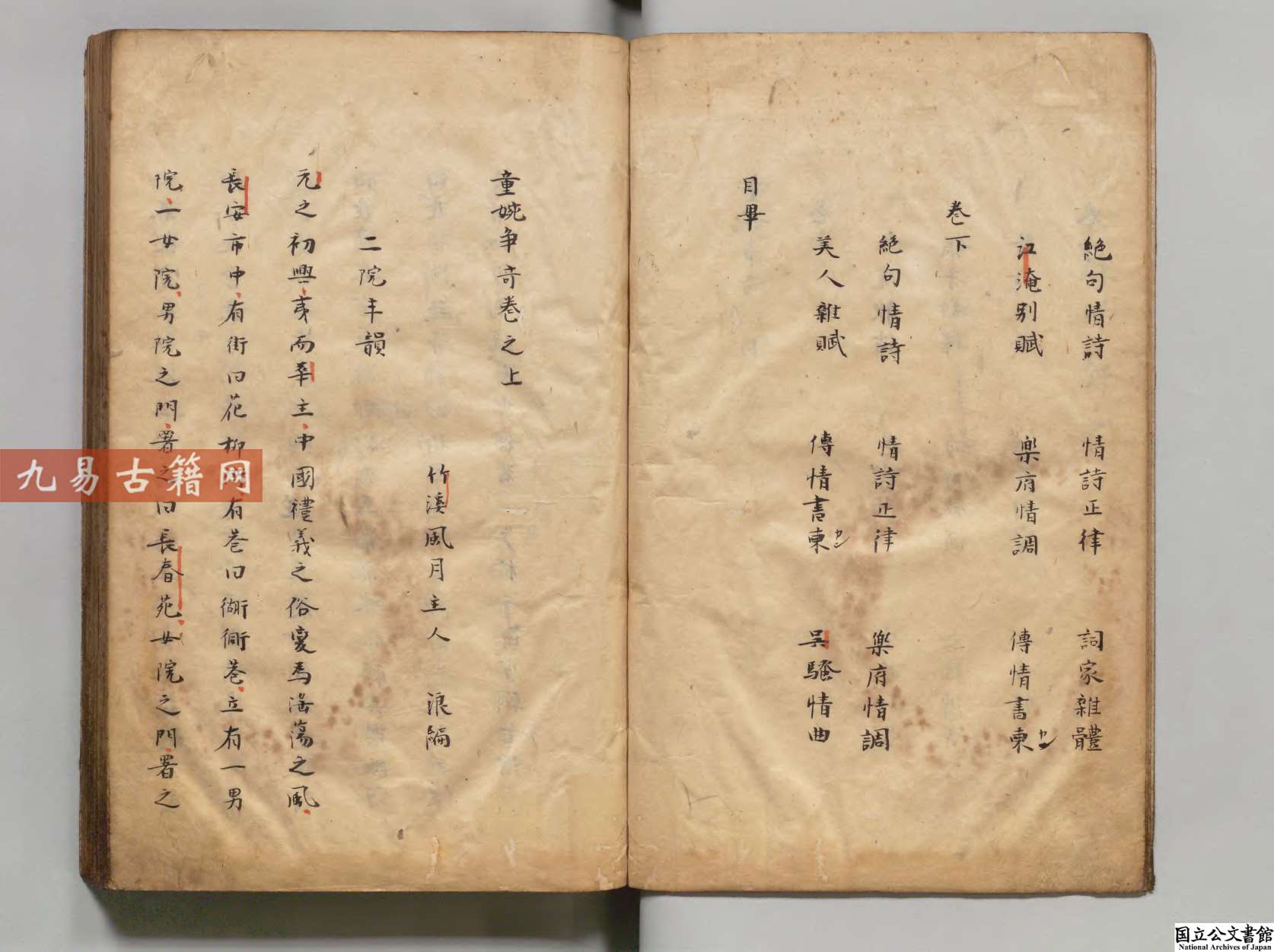 童婉争奇 編者鄧志謨(明)江戸初写本.pdf 111页。古籍整理双开电子版。 《童婉争奇》为明代文人邓志谟编纂的文言小说,成书于万历年间(约十六世纪末至十七世纪初)。现存江户初期写本系日本早期传抄本,属海外稀见文献。 该书内容属“争奇”类游戏文字,虚构童、婉两性角色以诗赋词章相互辩难,穿插酒令、谜语等民间文艺形式,体现晚明市井文学的诙谐趣味与知识炫耀特征。文本融合雅俗语体,折射出明代中后期出版文化中商业写作与文人雅趣交织的创作生态。 该写本保留了明代刊本的原貌,是研究中国古代小说东传及中日书籍交流的重要实物资料。 ├──童婉争奇 編者鄧志謨(明)江戸初写本.pdf 22.58M 111页 声明:本站所有文章,如无特殊说明或标注,均为本站原创发布。任何个人或组织,在未征得本站同意时,禁止复制、盗用、采集、发布本站内容到任何网站、书籍等各类媒体平台。如若本站内容侵犯了原著者的合法权益,可联系我们进行处理。