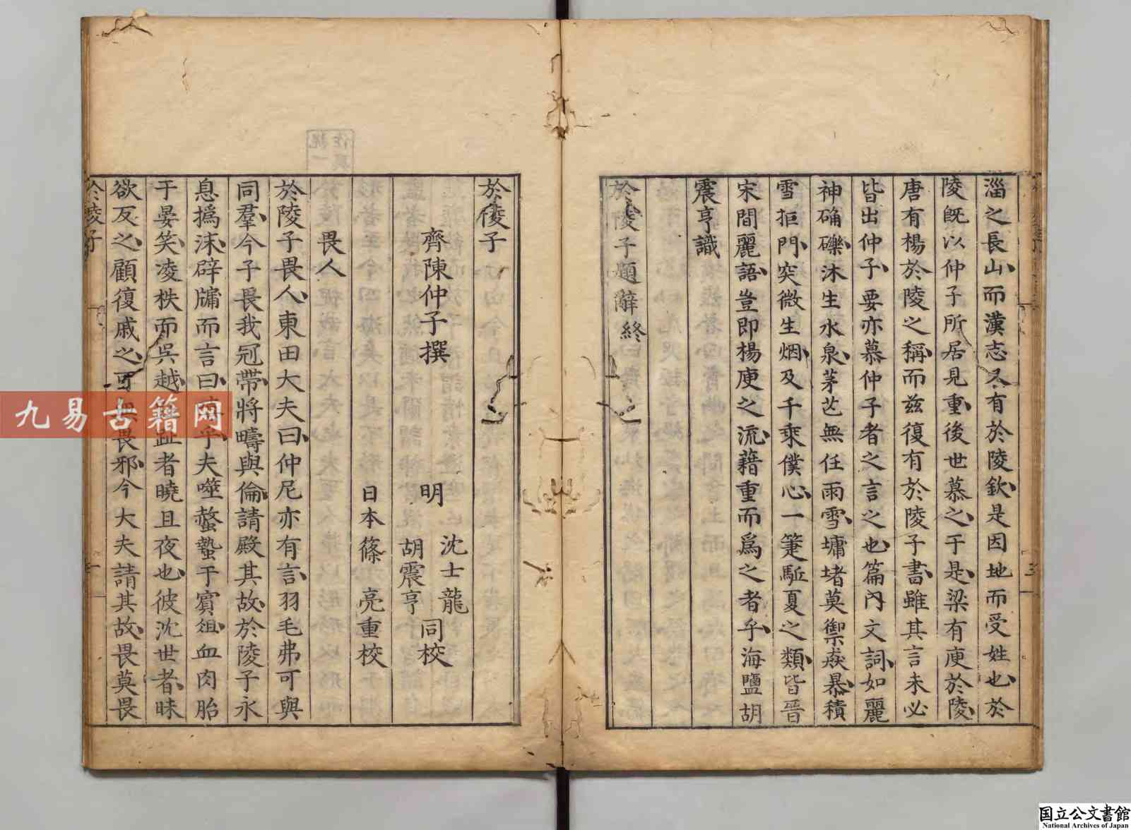 於陵子 選者陳仲子(周)/校訂者沈士竜(明)/校訂者胡震亨(明)刊本寛保02年刊本.pdf 20页。古籍整理双开电子版。