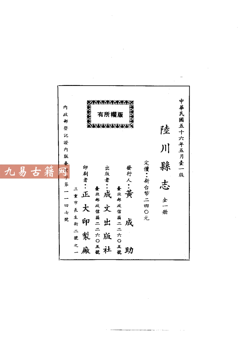 《民国陆川县志》系陆川县在民国时期编纂的综合性地方志。其成书年代为二十世纪四十年代初,具体刊行于1943年(民国三十二年)。该书由时任陆川县县长古济勋主修,邑人吕浚堃等人总纂。