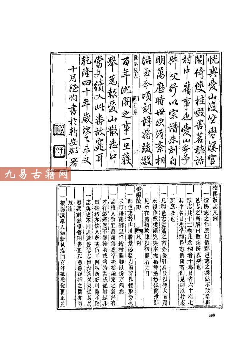 橙阳散志.pdf 118页。古籍整理电子版。 《橙阳散志》是一部清代乡镇志,成书于嘉庆十二年(1807年)。作者为江登云,后由其子江绍莲续编成书。该书专记安徽歙县橙阳村(今属徽州区)一地的史地状况。 其特征是体例严谨、内容详实,属典型的徽州村落志。全书内容涵盖橙阳村的建置沿革、山川形势、桥梁建筑、物产风俗、人物传记及诗文杂记等,尤其注重记载当地江氏宗族的世系与徽商活动,保留了清代中叶徽州村落经济、社会与文化的珍贵一手资料。 该书类型属于中国地方志中的乡镇志(或村落志),是研究徽学、清代乡村社会及宗族历史的重要文献。 ├──橙阳散志.pdf 3.98M 118页 声明:本站所有文章,如无特殊说明或标注,均为本站原创发布。任何个人或组织,在未征得本站同意时,禁止复制、盗用、采集、发布本站内容到任何网站、书籍等各类媒体平台。如若本站内容侵犯了原著者的合法权益,可联系我们进行处理。