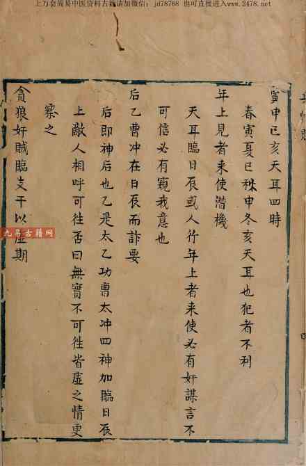 《六壬兵帐赋》以古代兵法为框架,将六壬占卜融入军事决策:小到侦查敌军虚实、判断来使奸谋(如“天耳临日辰,来使有奸”),大到预测战局走势、排兵布阵(如“天罡加孟贼不来,加季贼来急”),皆通过天干地支、神将生克推演吉凶,堪称“战场天机指南”。