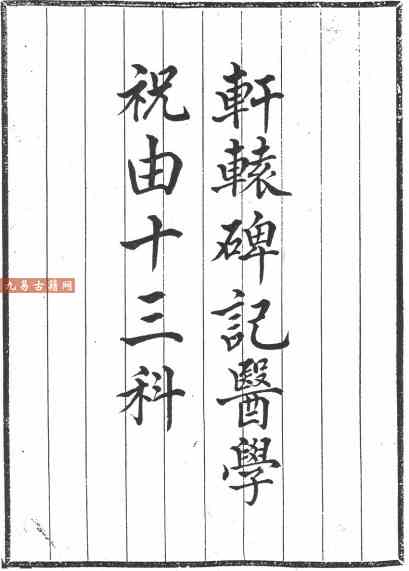 《轩辕碑记医学祝由十三科》.pdf 104页,古籍单开影印本电子版。