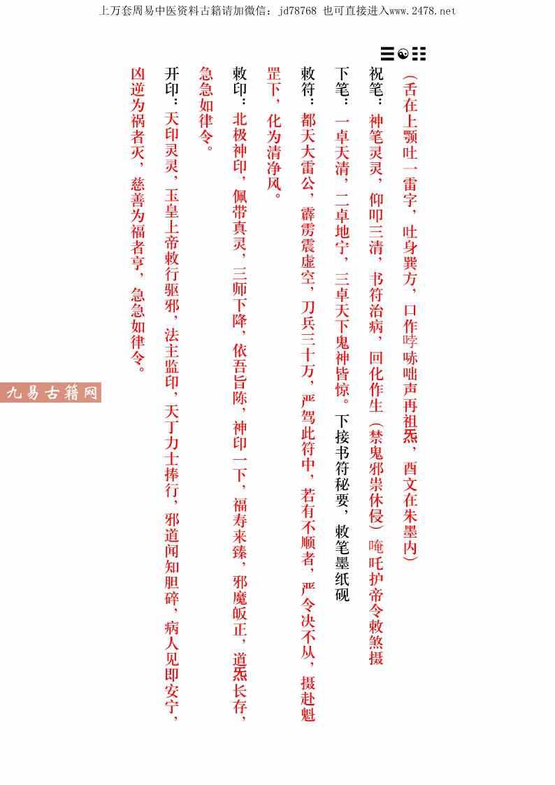 镇邪:雷祖符召九霄神雷,破秽涤浊;