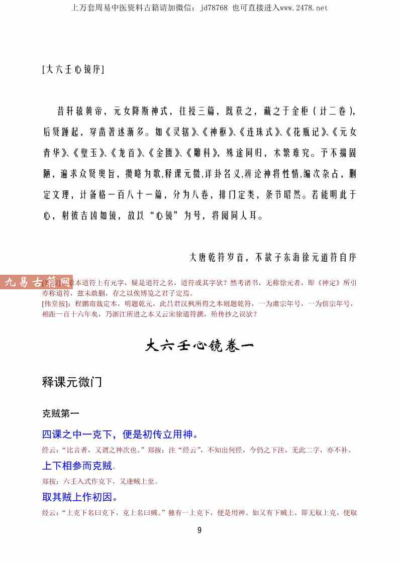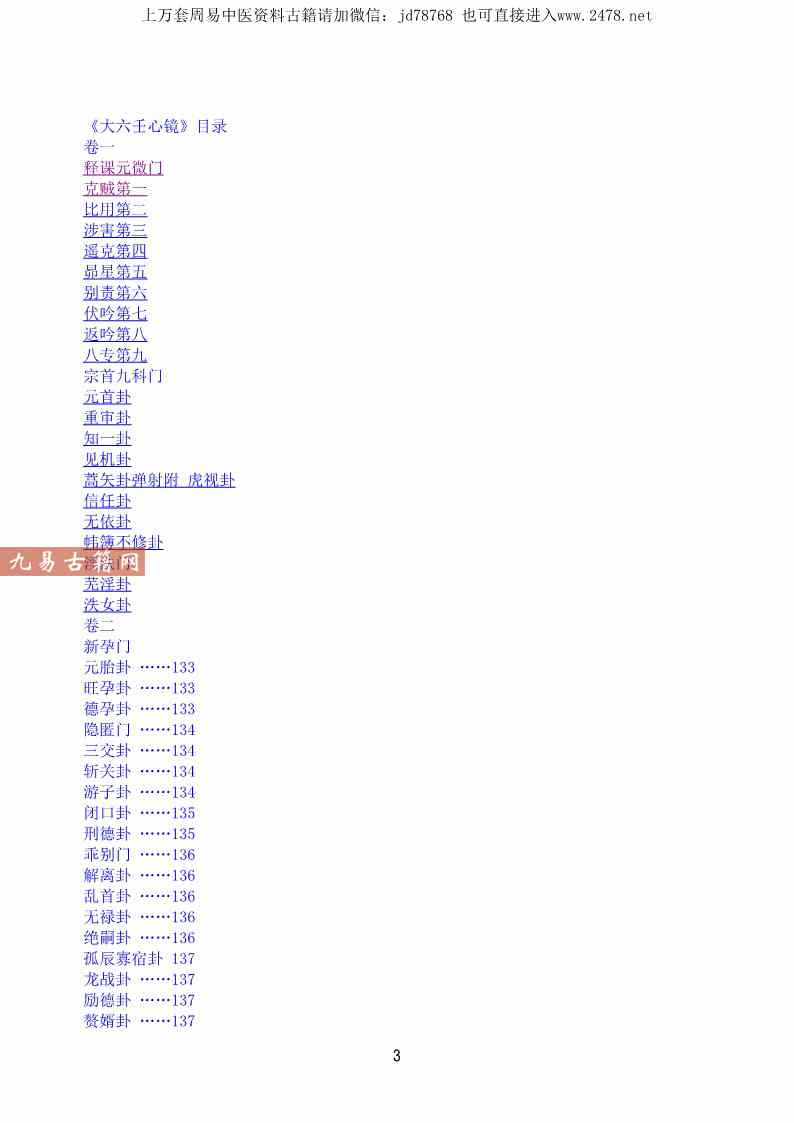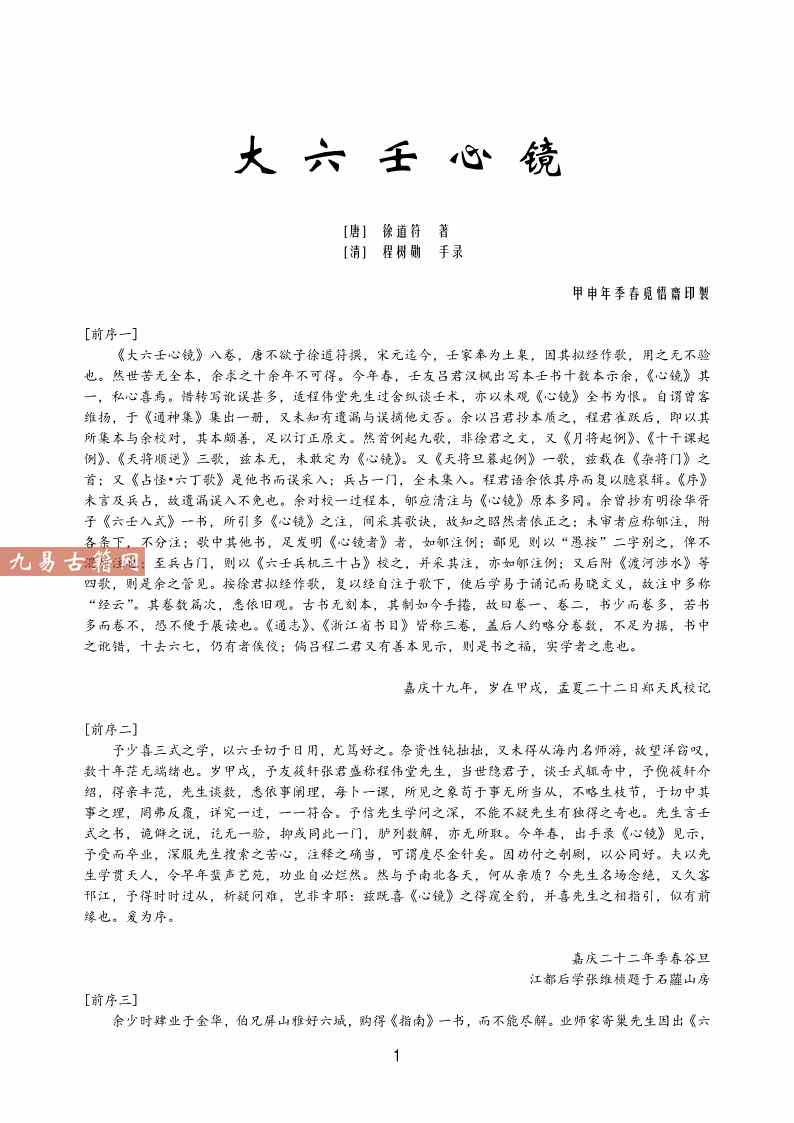 大六壬心镜.pdf 85页,现代整理本电子版。注意:目录页码无效,原书经过电子书装载后页码变少。