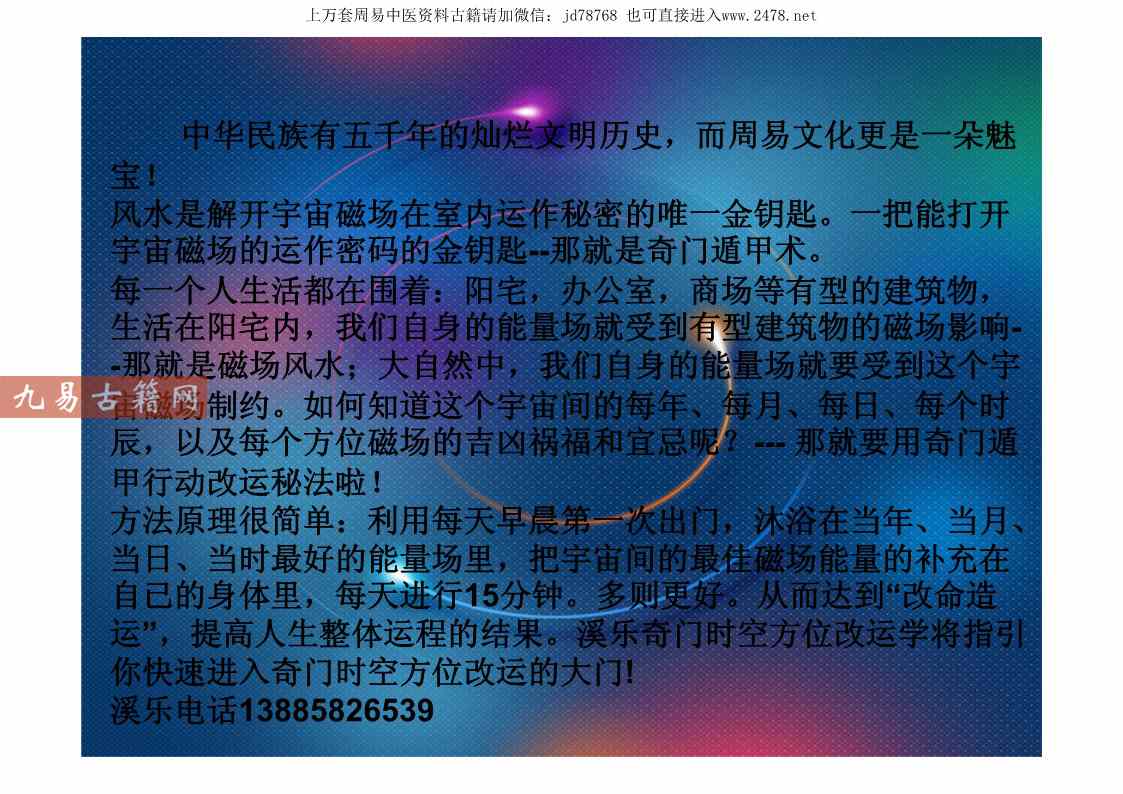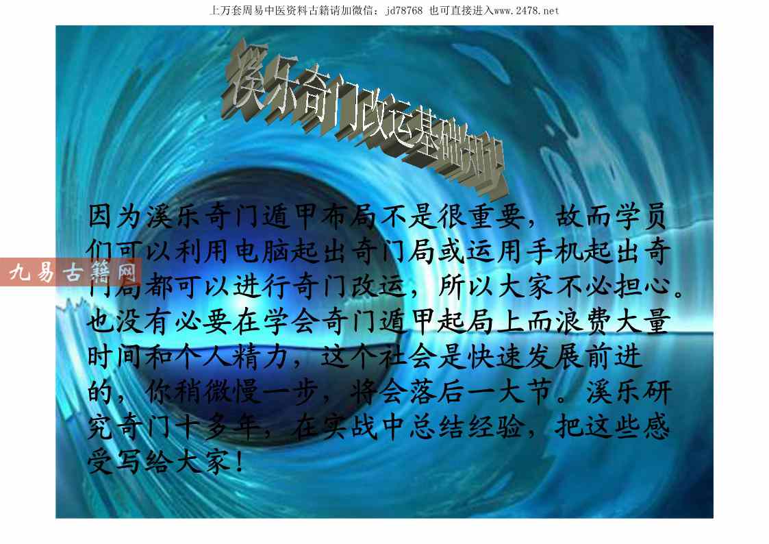 溪乐-最新奇门改运高级研讨课件.pdf 117页,这是多年前在淘宝花了几百块买到的溪乐奇门改运课件,共讲解了35种通过奇门改运的方法。