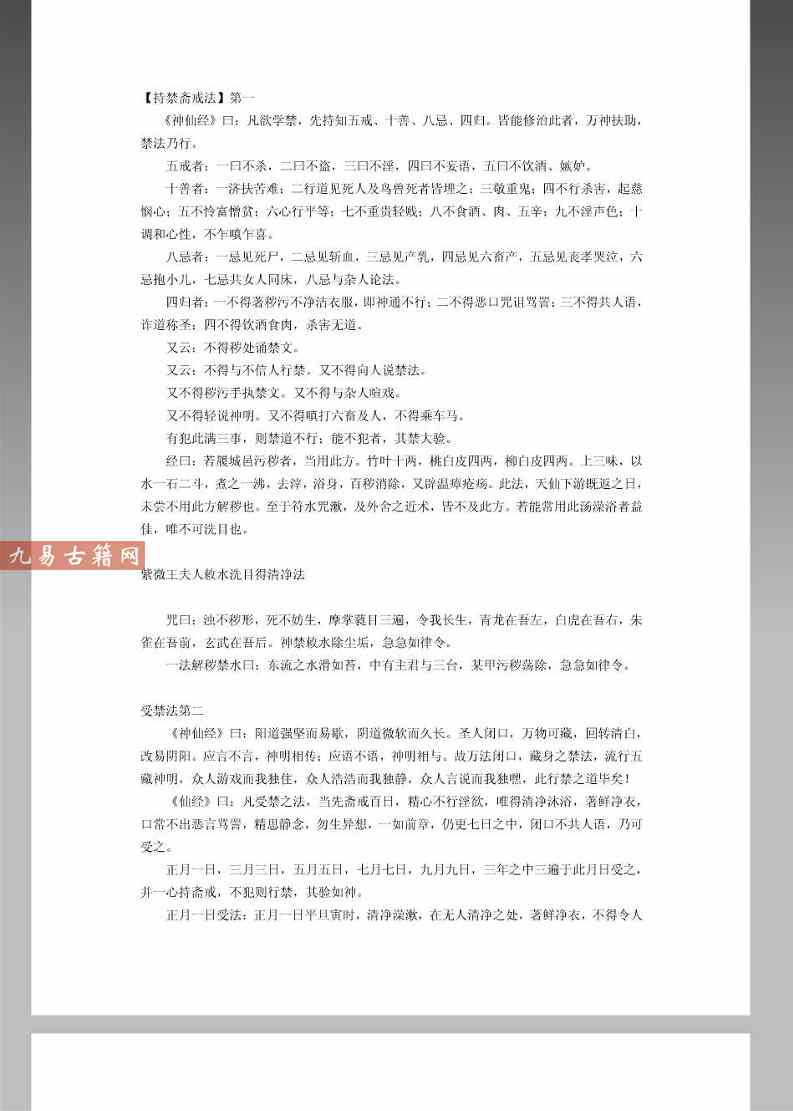 禁法卷:载「五戒十善八忌四归」之术,修者需斋心洁体,持咒踏罡,以意念禁制病魔。若犯戒律,则神通尽失,反遭阴噬。