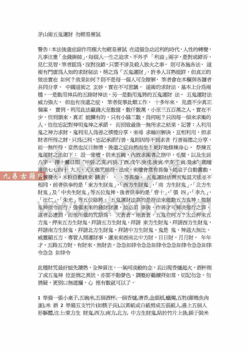 茅山术五鬼运财勿轻易尝试.pdf 2页,记述并不详细,故免费分享了。
