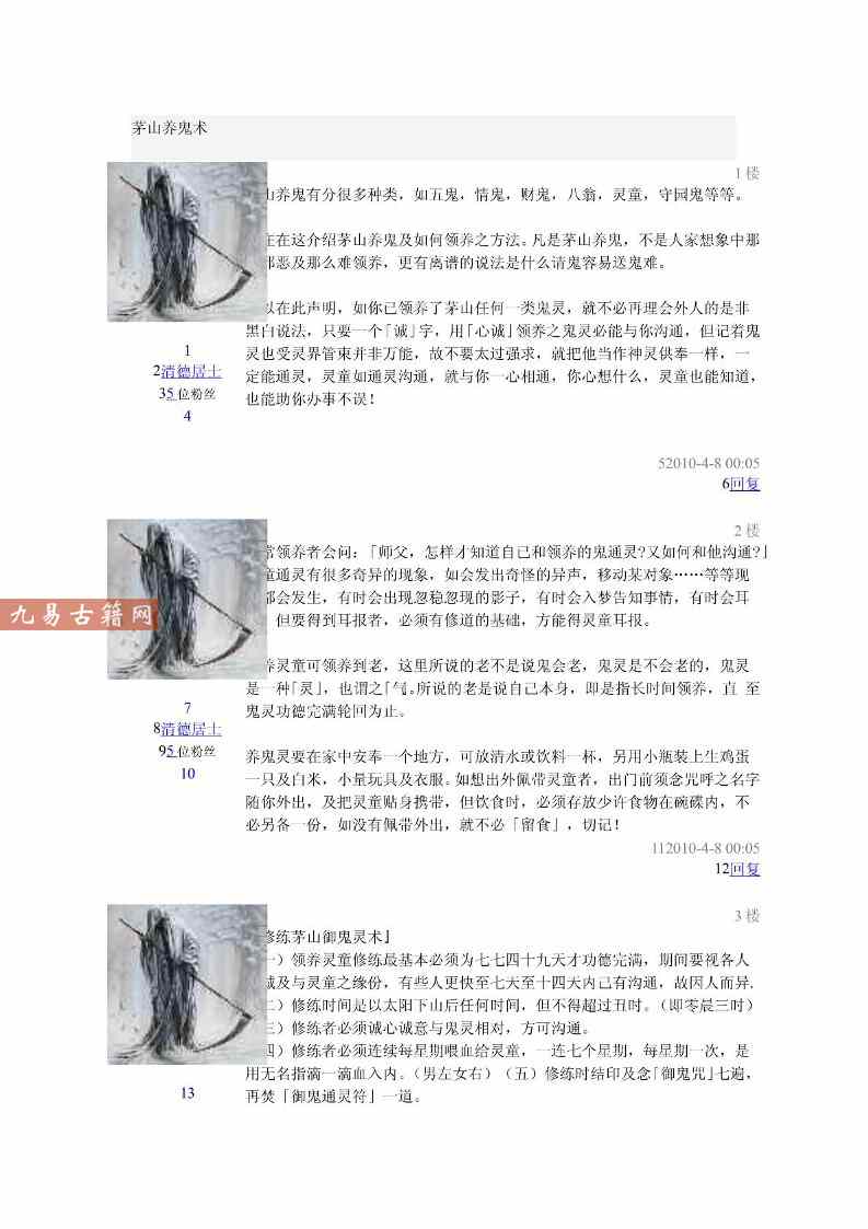 清德居士 茅山养鬼术.pdf 8页,大致简略的讲解了一下,普及知识相对更多,非完整的诀窍分享,故免费分享了。