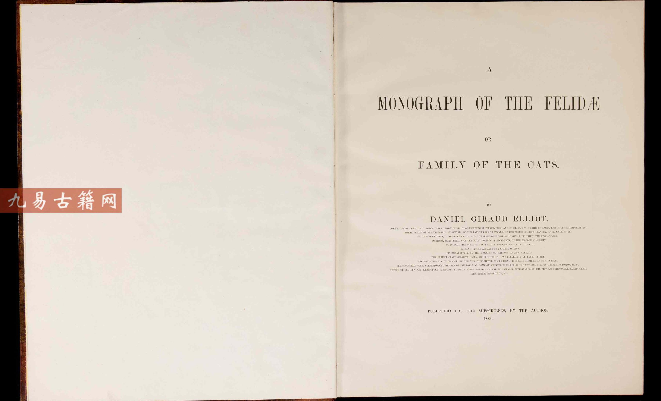 猫科动物图鉴.A monograph of the Felidae or family of the cats.By Daniel Giraud Elliot.英文版.1883年.pdf,89页,英文电子版。