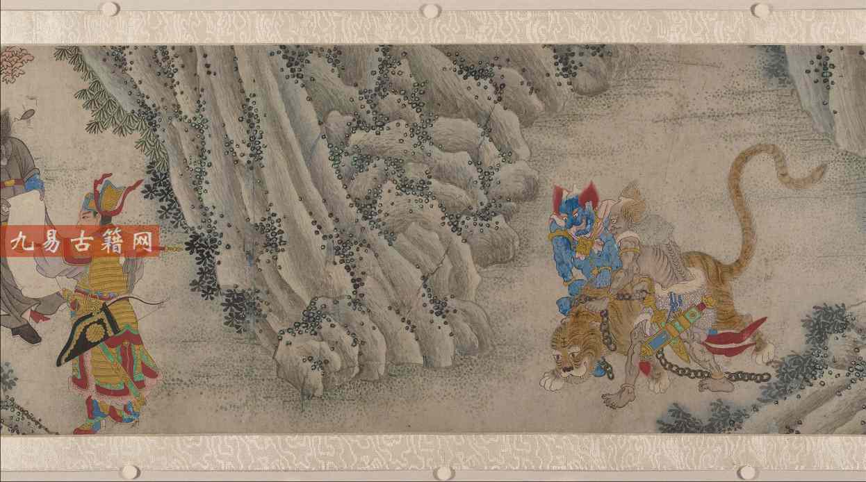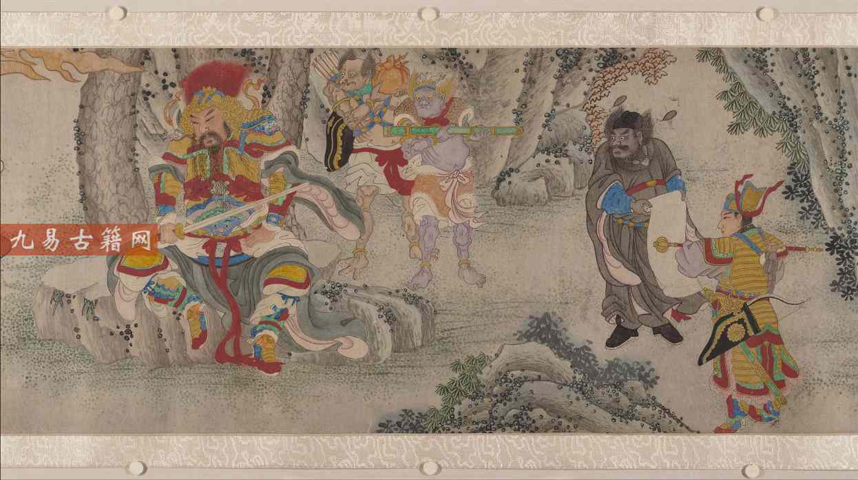 《搜山图》是明代画家郑重所绘的纸本设色手卷,约创作于16世纪末至17世纪初3。此画以民间传说“二郎神搜山降魔”为主题,描绘神将们手持兵器、纵鹰放犬,追捕化为人形或原形的山精野怪,场面紧张又充满戏剧性。