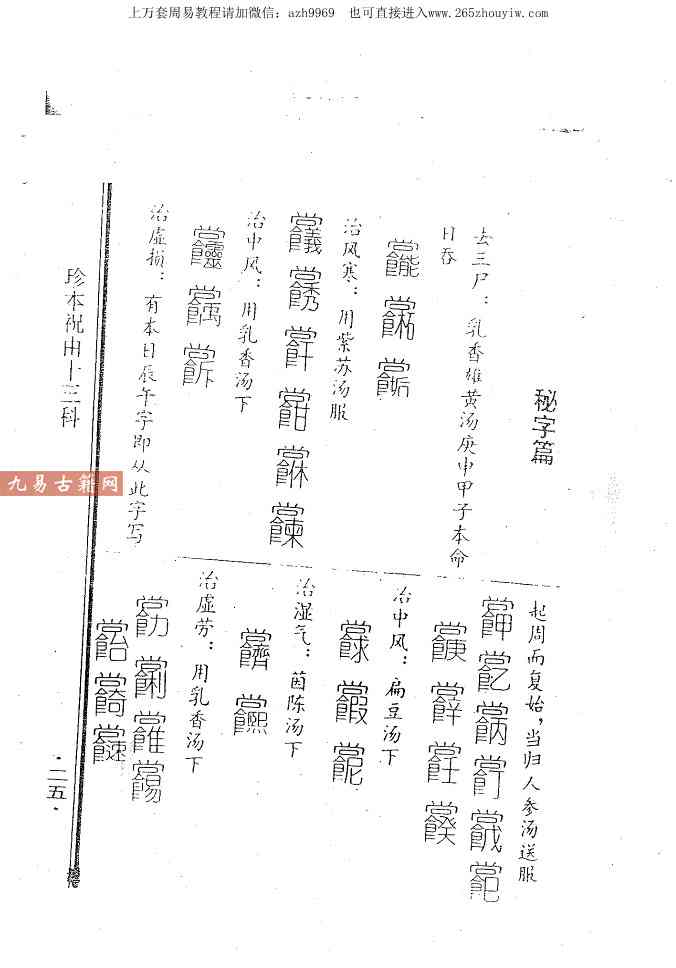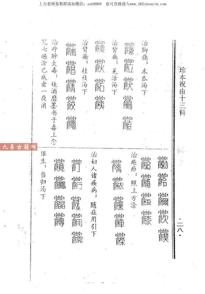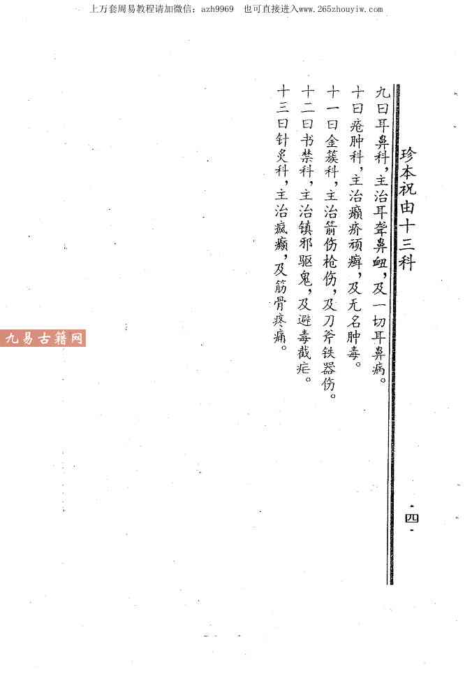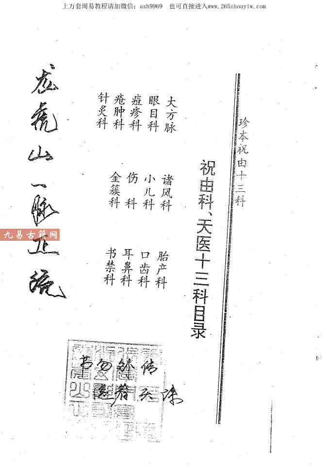 涵盖大方脉(内科)、风科、禁科(符咒镇邪)、外科、疮肿科等 13类医术,统称“祝由十三科”。以符咒、秘字替代药石针灸,避免误诊风险。