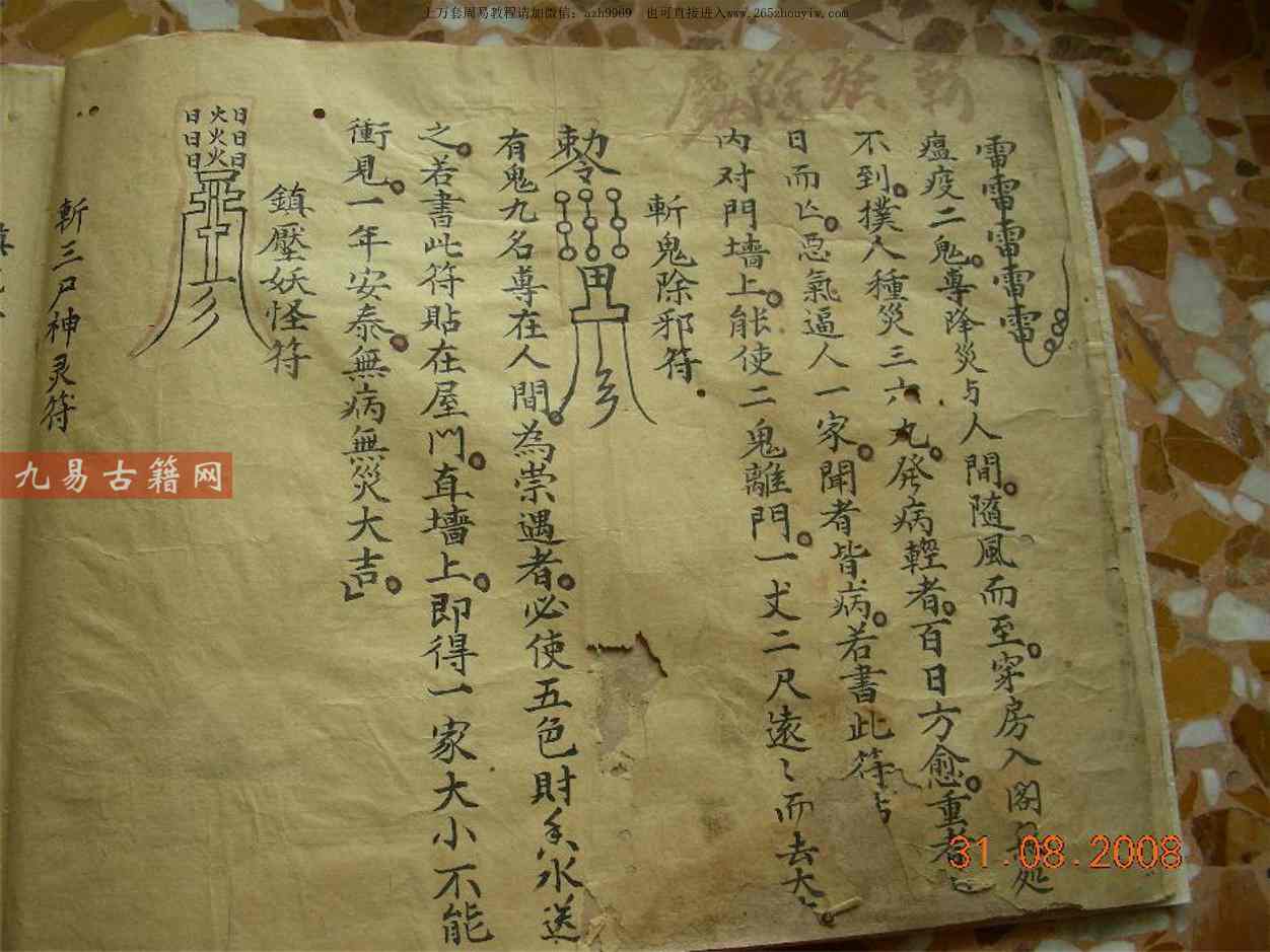 书中核心是“符乃天神旨令”——将神力凝为符号,贴于门楣可镇宅,吞入腹中能祛病。最奇的是“逐日病符解法”:初一病者为东南方树神作祟,需用黄纸符向东南方四十步送之;十五病者遭水火二神缠扰,得用白纸符向正南三十步焚化……不同日期、方位的鬼祟(如枉死妇人、土地家亲),对应不同颜色、方向的符,像一本“与神鬼对话的密码本”。