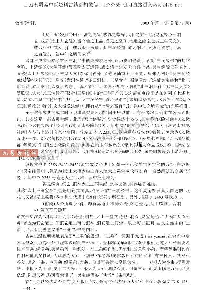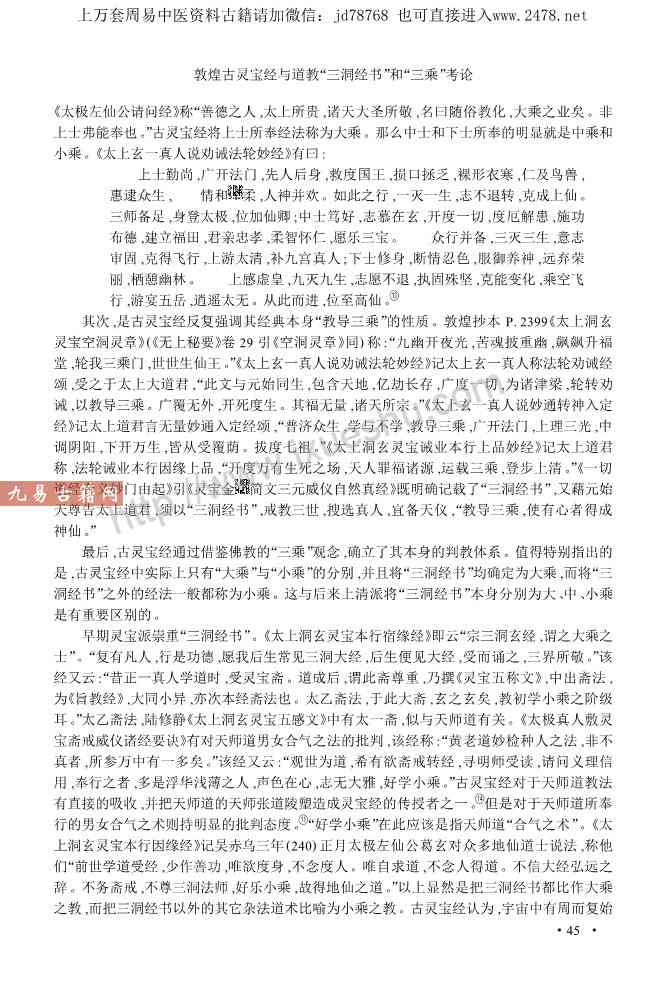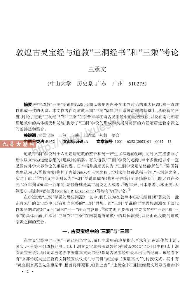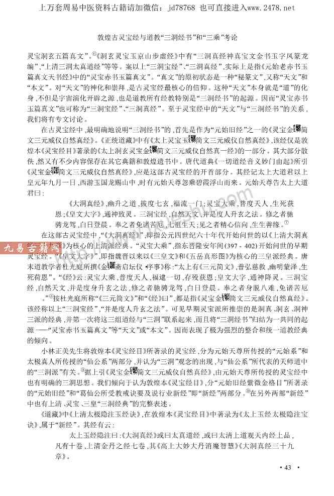 敦煌古灵宝经与道教“三洞经书”和“三乘”考论.pdf 13页,现代考论,电子版。免费分享,链接失效为止。