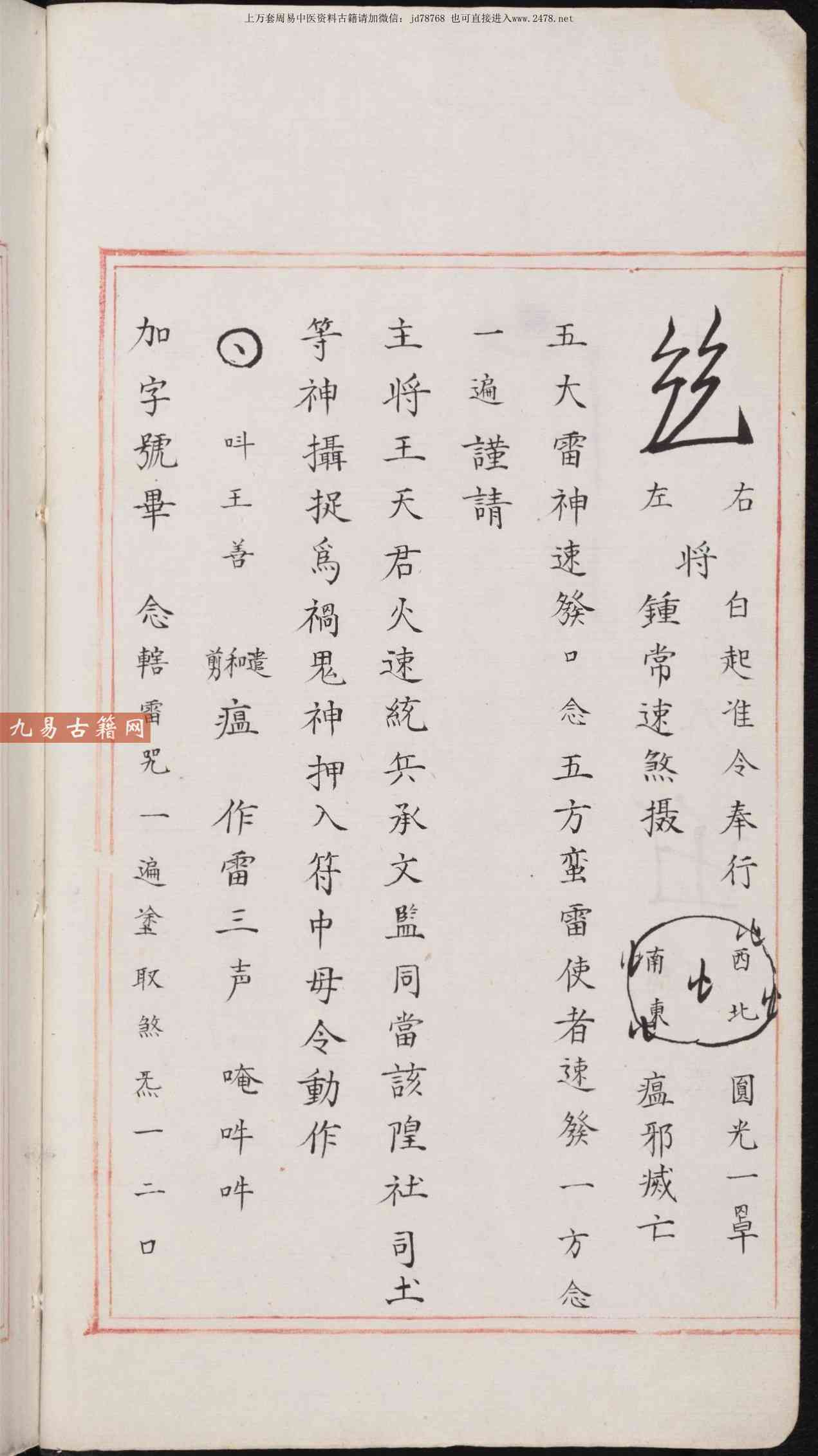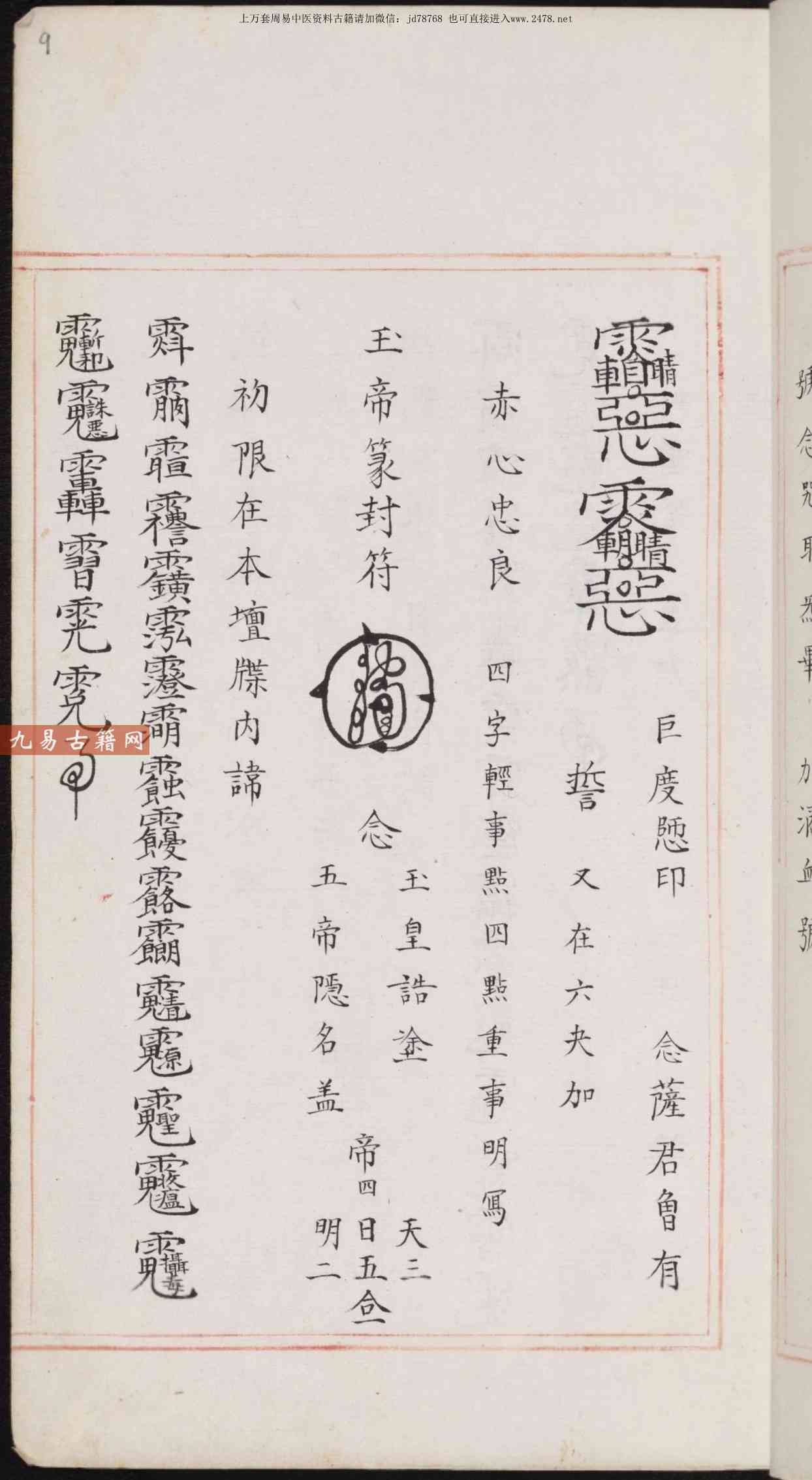 《祝由科》或名《秘诀奇书》符箓秘诀.不分卷.佚名撰.明嘉靖中期内府朱丝栏钞本.pdf,214页。