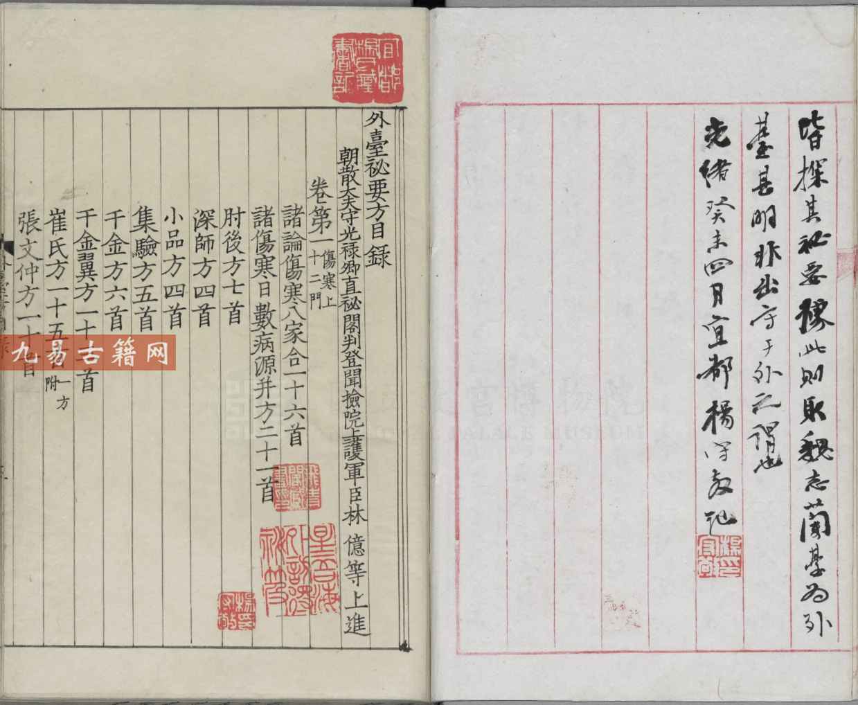 《外台秘要方》成书于唐代天宝十一年,由王焘编撰。此四十卷两册医典汇聚晋唐间百家秘术,堪称医学界的“藏经阁”。王焘执掌弘文馆二十载,遍阅皇室珍本,将失传禁方、异域奇术尽收其中。书中暗藏蛊毒解法、金石炼丹要诀,更录有西域幻医以心药治魂疾的玄奇医案,仿佛能借草木之灵沟通天地阴阳。这部秘典不仅系统收录内外诸科诊治大法,更暗藏诸多近乎玄通的养生延年之术,千年间被医家奉为窥破生死之谜的无上宝典。