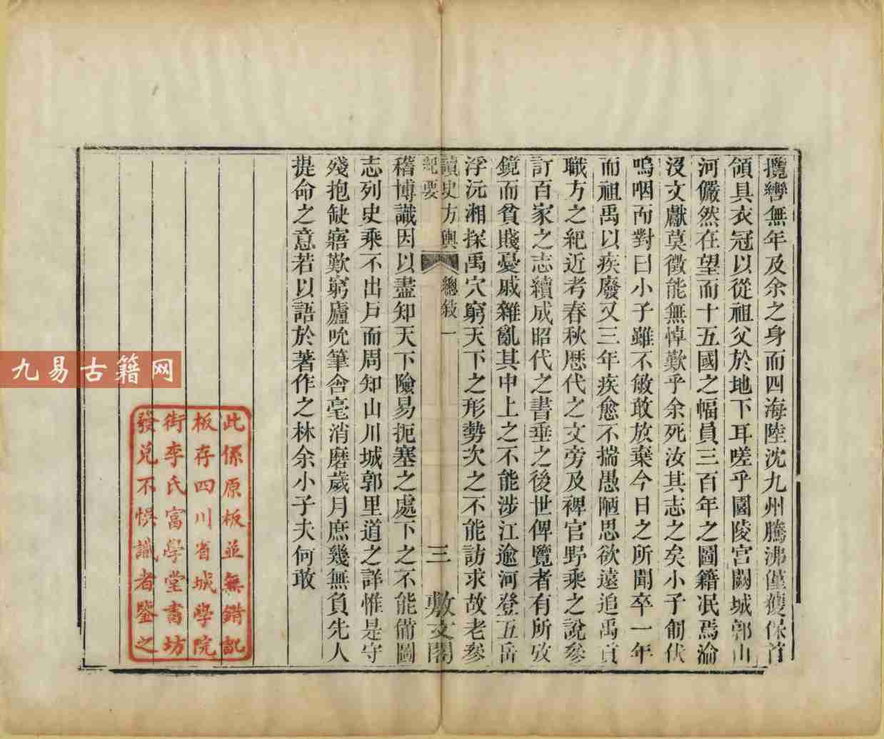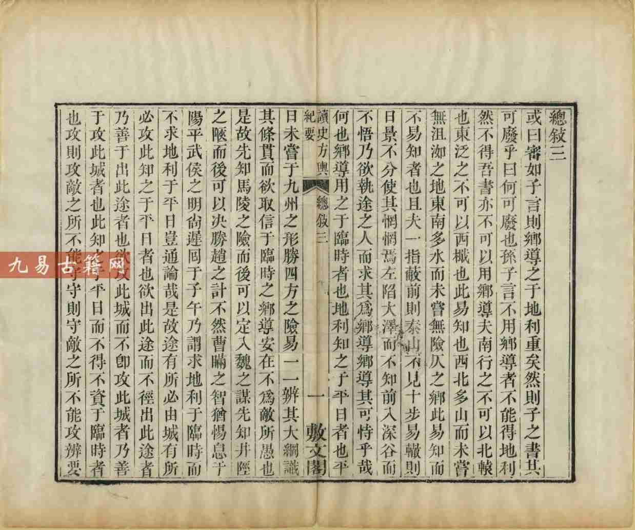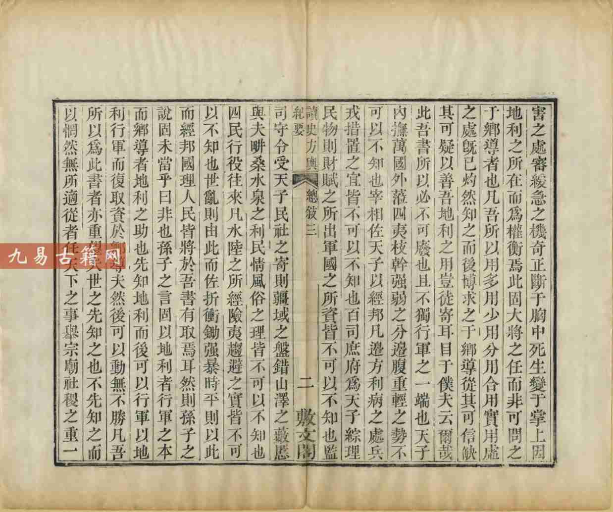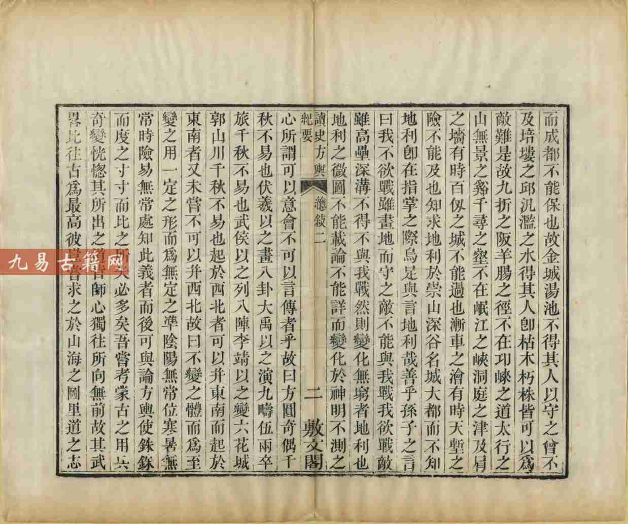 此书突破传统奥地志书体例,融历史军事地理、政区沿革地理与兵要地志于一体,尤重险要阐释与战守分析,被誉为“千古绝作”。现存清嘉庆十六年敷文阁藏板龙万育刊本,为早期重要刻本。全书兼具文献考据与实用价值,是研究中国古代军事地理与历史政治地理的划时代巨著。