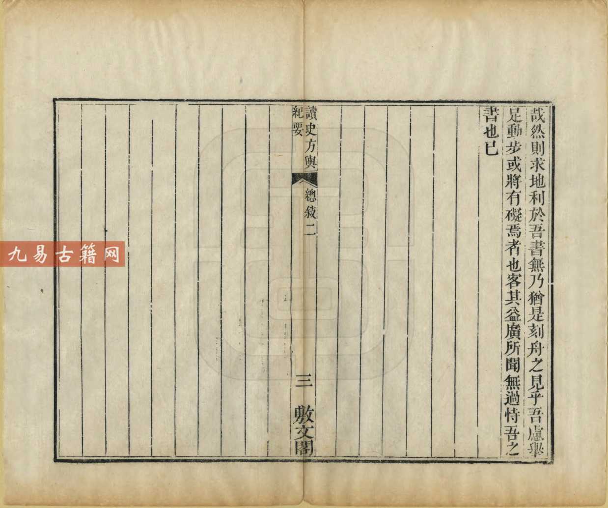 读史方舆纪要.一百三十卷.舆地要览.四卷.清.顾祖禹撰.敷文阁藏板.清代锦里龙万育刊本.pdf 5199页。古籍整理双开电子版。